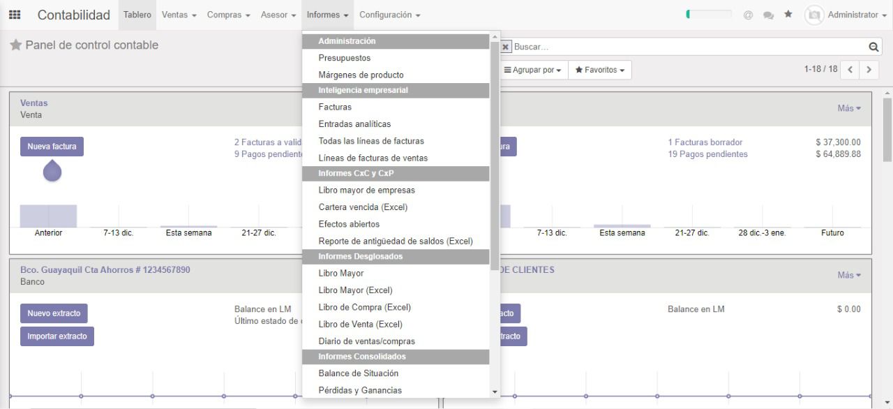 Facturadeuna.com es la herramienta más completa de gestión contable totalmente integrada con Odoo, el sistema cumple con la normativa tributaria y laboral vigente, generación de información contable según NIIF`s, facturación electrónica con conexión directa al SRI y toda la reportería necesaria para cumplir con tus obligaciones tributarias.